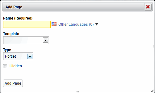 Key in the name of the New Page in the Name open text field. (The menu option will display the name you key into this field).